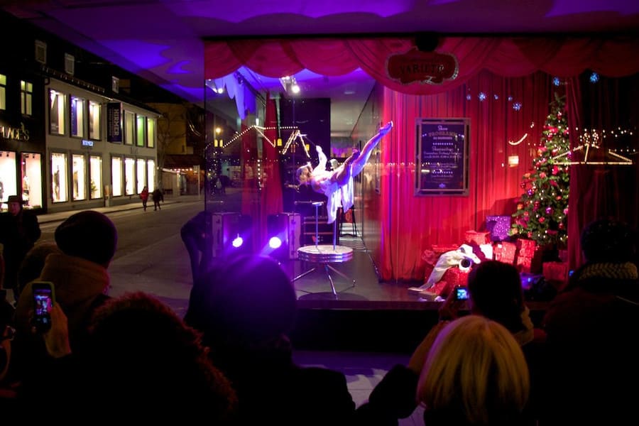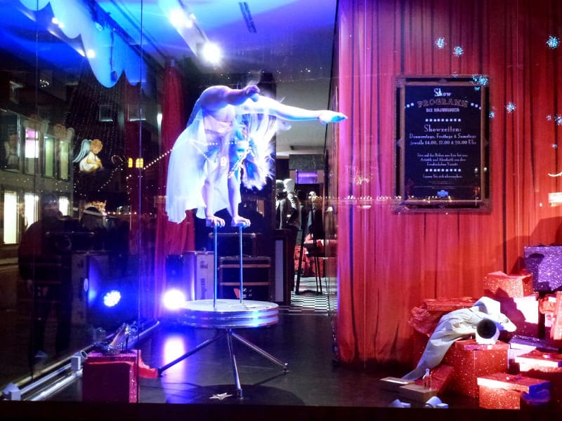 During the Christmas season, the Breuninger department store in Stuttgart brought its window displays to life with real show acts under the concept "Living Window".