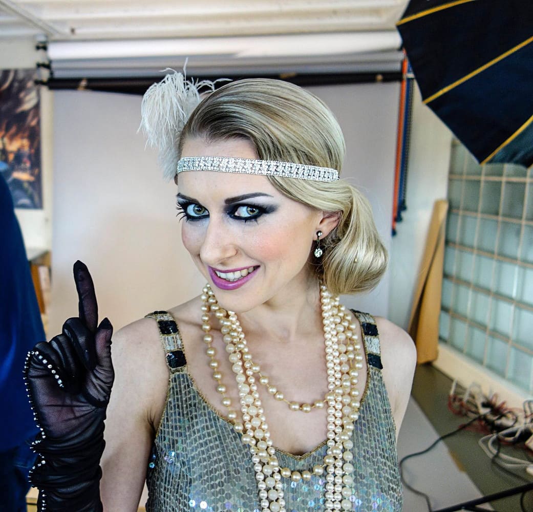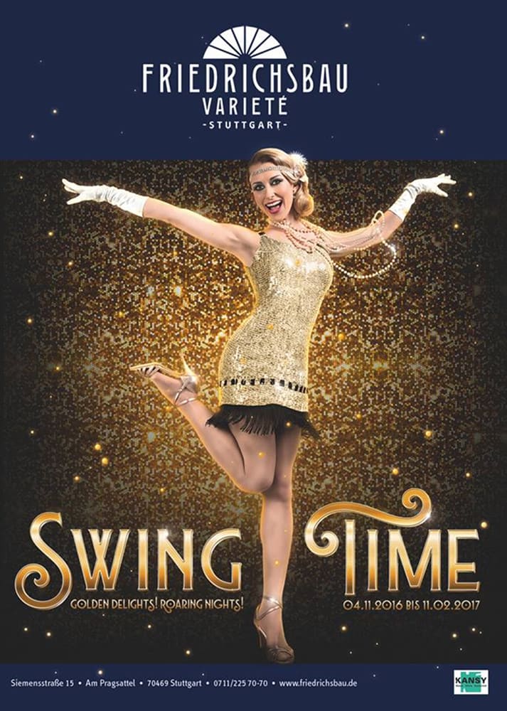 Marina Skulditskaya on the poster of the variety show "Swingtime" at Friedrichsbau Variete in Stuttgart.